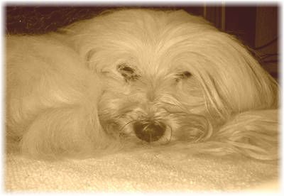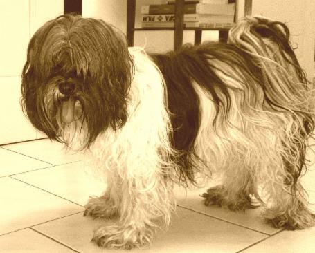 Kandra von Nama-Schu ist im Alter von 13 Jahren über die Regenbogenbrücke gegangen. Sie war etwas Besonderes, mit ihr haben wir unseren ersten Wurf Tibet Terrier gezüchtet. Ihre einmalige Art lässt uns auch sie nicht in Vergessenheit geraten, denn sie vereinte viele Charaktereigenschaften in einem Wesen. Liebevolle Mama mit konsequenter Erziehung ihrer Welpen, Schmuse- und Sofahund. Sie verschmähte nichts Essbares, wenn es darum ging, ihren Heisshunger zu stillen. Erfolgreich nahm sie an nationalen und internationalen Ausstellungen teil. Ihr grösster Erfolg, der Titel "Österreichischer Jugendchampion" im Jahr 1994!