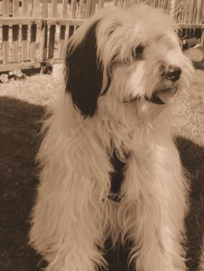 Kharra, ein Ebenbild ihrer Mutter Kandra in weiss. In unserem Leben warst du der dritte Hund und etwas ganz Besonderes, ein typischer Tibet Terrier. Du warst eine begeisterte und treue Begleiterin unserer Familie beim Skifahren in den Bergen, in unseren Urlauben und daheim beim Radfahren, in Deinem Körbchen sitzend, auf dem Deich die Nordsee entlang. Leider musstest du viel zu früh das Land hinter der Regenbogenbrücke betreten, eine wunderschöne Zeit mit Dir, sowie eine lange Freundschaft mit unserem Papagei Jakob ging plötzlich zu Ende. Wir denken oft an Dich und vermissen Dich sehr!