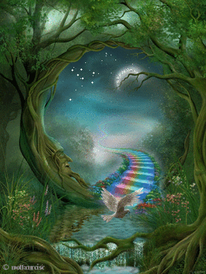 "Ich kann nicht bleiben, ich muss nun geh´n ... . Der Regenbogen ruft mit den schönsten Farben. Aber immer, wenn es regnet und die Sonne scheint, bin ich bei Dir und leuchte nur für Dich. Denk´ immer daran, du hast mich nicht verloren. Ich bin Dir den Weg nur vorausgegangen ... . Der Tag wird kommen, an dem wir uns wiedersehen, im Land hinter dem Regenbogen!"