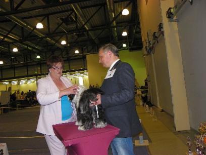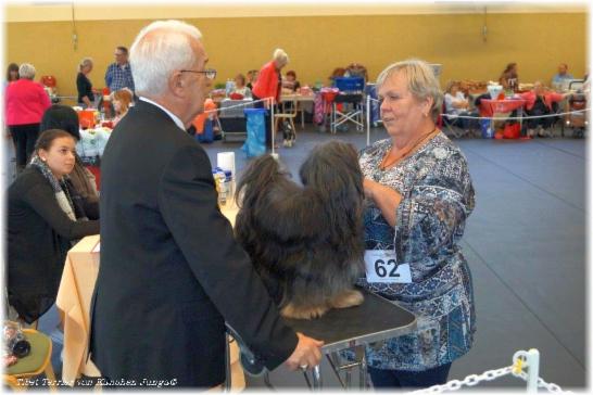 Sie landete, vor Schwester Ra-Ya, auf dem ersten Platz und erhielt ein V1 mit Anw.Dt.Ch.VDH+Anw.Ch.Klub.