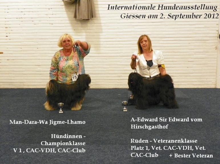 Platz 1, Anw.Dt.Vet.Ch.VDH, Vet.CAC, Bester Veteran, Landesveteranensiegerin Thüringen